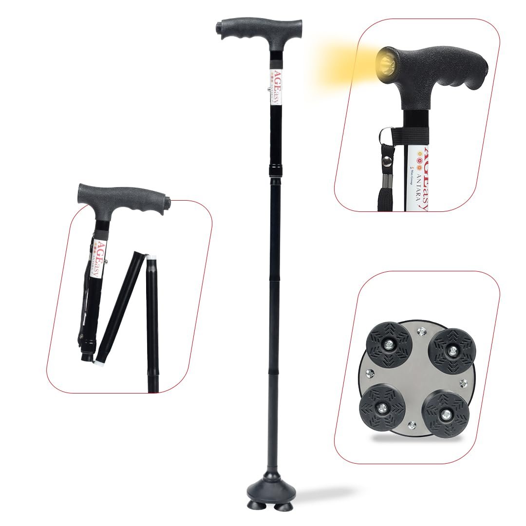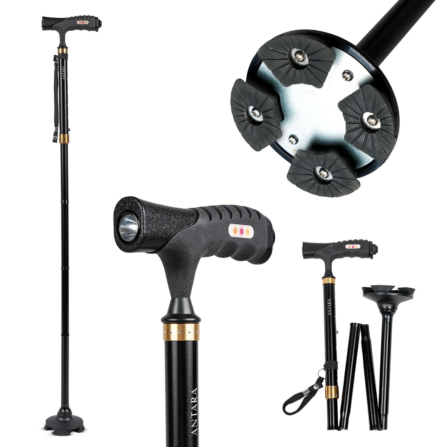 Antara AGEasy (Max Group) Foldable Walking Stick with Built-in LED Light | Adjustable Height
