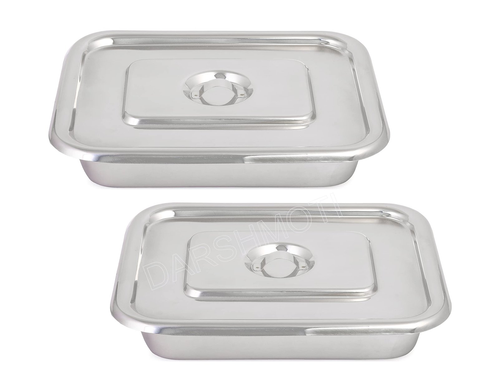 DARSHMOTI® Stainless Steel INSTRUMENT TRAY with Flat Cover and Lid Handles, Reusable and Autoclavable making them ideal for Hospitals, Labs and Surgical Centres