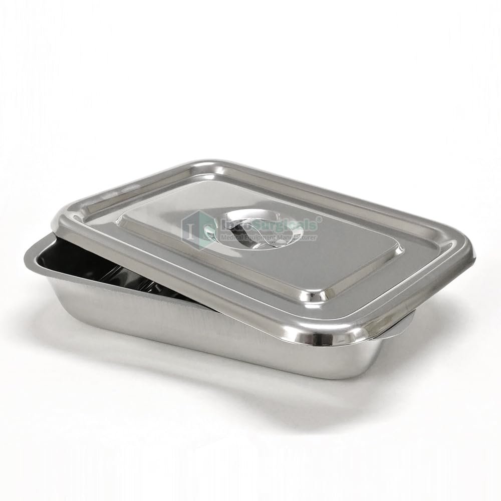IS IndoSurgicals Stainless Steel Instrument Rectangular Tray With Cover,Deluxe Quality(2,10″X8″X2″)
