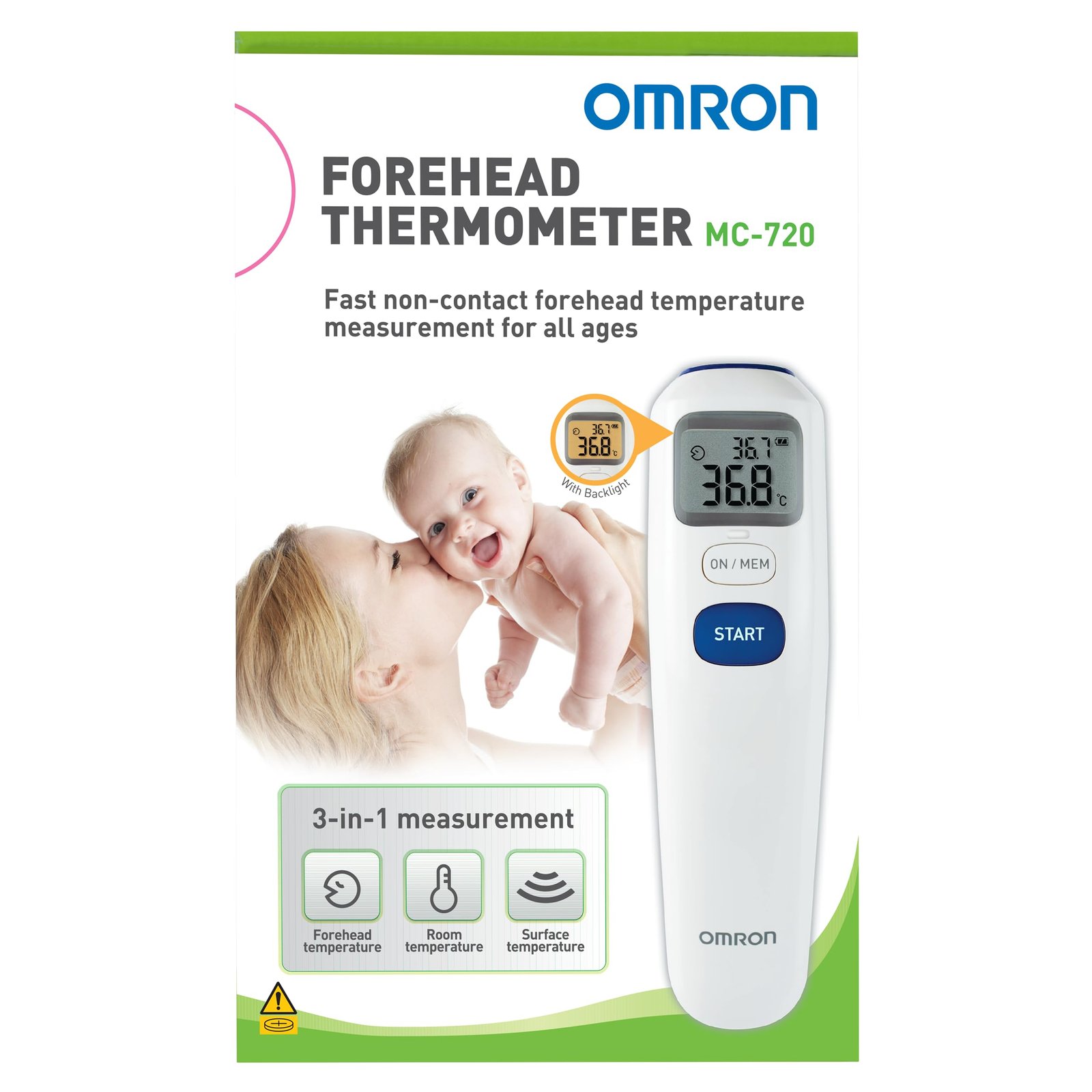 Omron MC 720 Non Contact Digital Infrared Forehead Thermometer With 1 Second Quick Measurement, 3 in 1 Measurement Mode, Auto On/off & Backlight